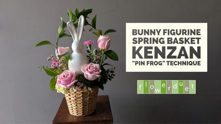 Flower Arranging Fridays: Bunny Figurine in a Basket with a Kenzan